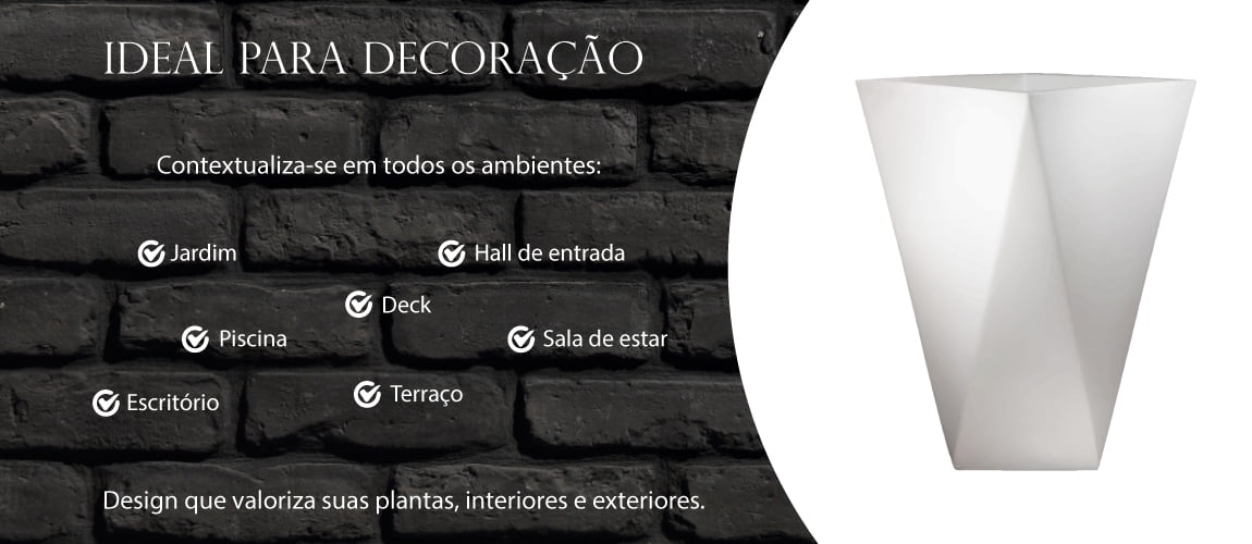 Decore com um design que valorizara suas plantas, interiores e exteriores de forma moderna. Perfeito para o seu jardim, seu hall de entrada, piscina, escritório, terraço, deck, sala de estar ou qualquer outro ambiente.