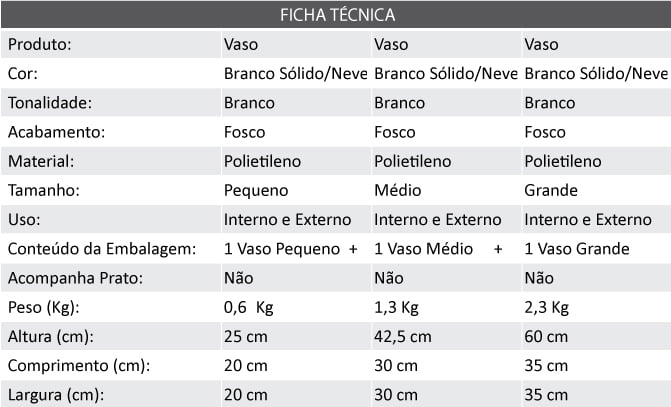 Conjunto Completo - Kit com 3 Vasos - Branco - Acabamento Fosco